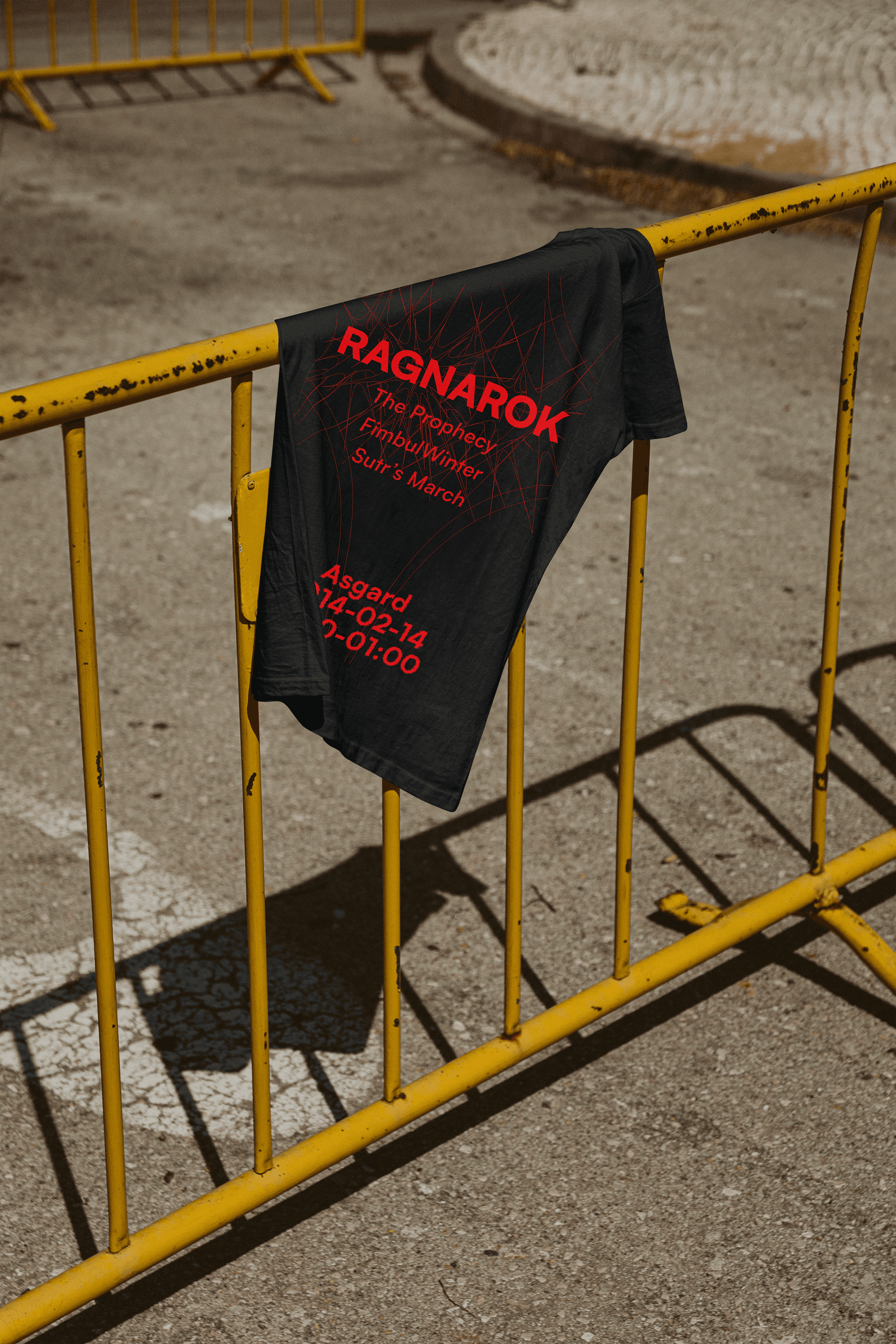 This experimental typography poster uses the typeface's story to influence the theme and design. Using geometrics and eventually Bauhaus, it was seen as a form of rebellion against the old tradition. This portrayal is further interpreted to Ragnarök, the death of the old gods.